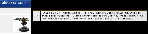Bestia Chase de affe que usó su Rally para tener Cosmic Energy team ability hasta que vuelva a elegir, en caso de verse envuelto en el rango de un Pulse Wave, perderá su Cosmic Energy team ability hasta volver a usar su Rally para elegir recuperarla.