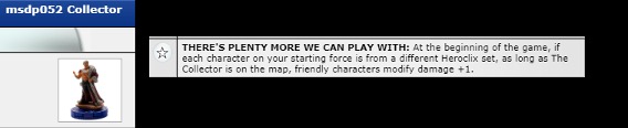 Collector Chase de msdp, si al comienzo del juego se cumplió la condición para que este personaje le de +1 de daño a sus aliados, al momento de estar en rango de Pulse Wave durante algún momento de la partida, perderá el efecto de +1 al daño por el resto del juego. (por lo que hay que tener mucho cuidado con esto)
